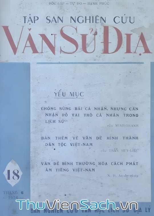 TẬP SAN NGHIÊN CỨU VĂN SỬ ĐỊA - TẬP 18