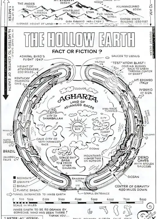 Tất cả các hành tinh trong Hệ Mặt Trời này là trống rỗng, và là nơi sinh sống của nhiều thực thể người với các tần số rung động khác nhau. Mặt Trời cũng rỗng, nhưng không nóng mà lạnh. Trái Đất của chúng ta là rỗng, và bên trong có một Mặt Trời ở giữa.