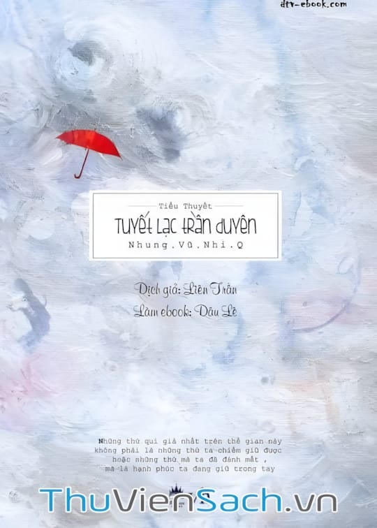 Độc giả có thể tìm mua ấn phẩm tại các nhà sách hoặc tham khảo bản ebook Tuyết Lạc Trần Duyên PDF của tác giả Nhung Vũ Nhi Q.nếu chưa có điều kiện.